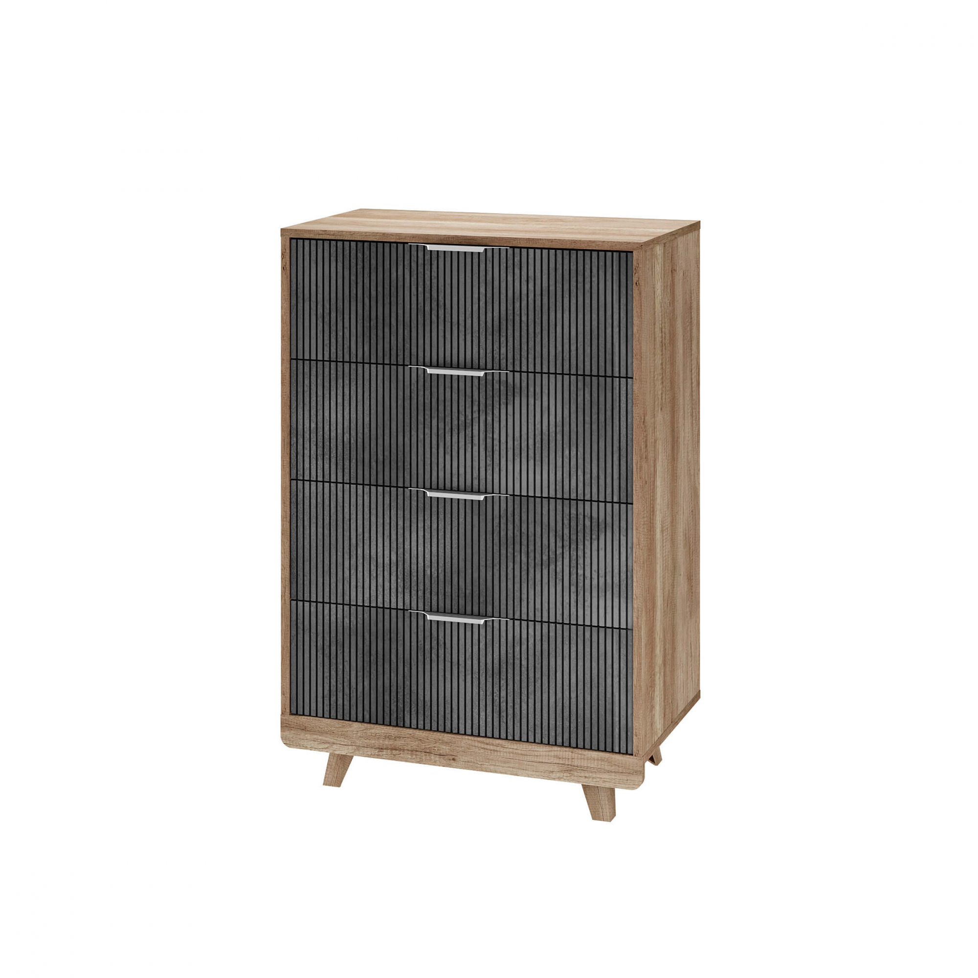Оригинальная фрезеровка и эксклюзивная фотопечать выглядит очень эффектно и эксклюзивно. Комод (КМ-02) состоит из четырёх выдвижных ящиков на шариковых направляющих для хранения одежды, пастельного белья и других хозяйственных аксессуаров.