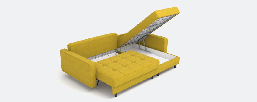 - два вместительных бельевых ящика: в оттоманке и диванной секции, в которые вместятся все комплектующие для сна и отдыха.