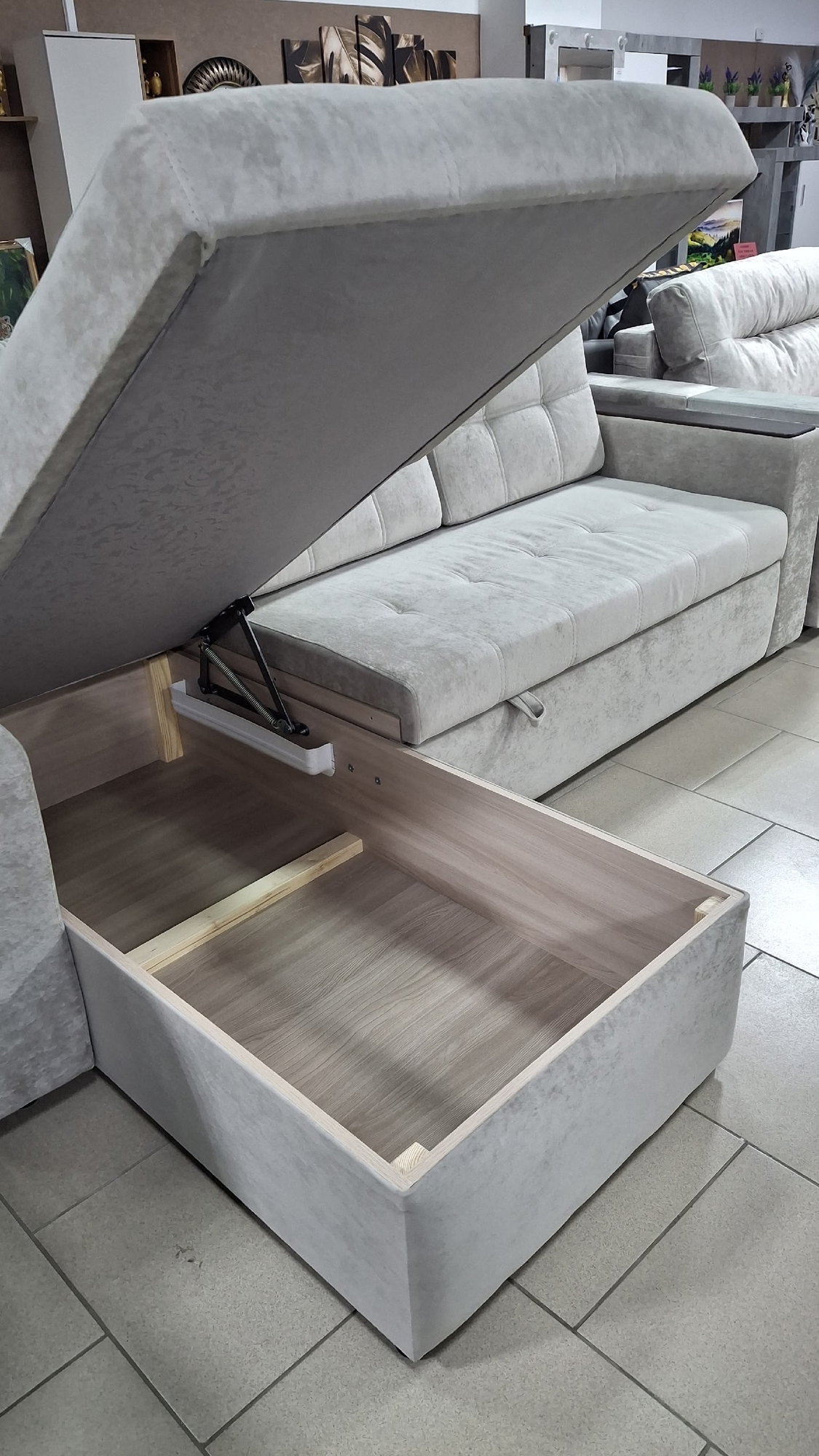 Вместительный ящик для белья в оттоманке.