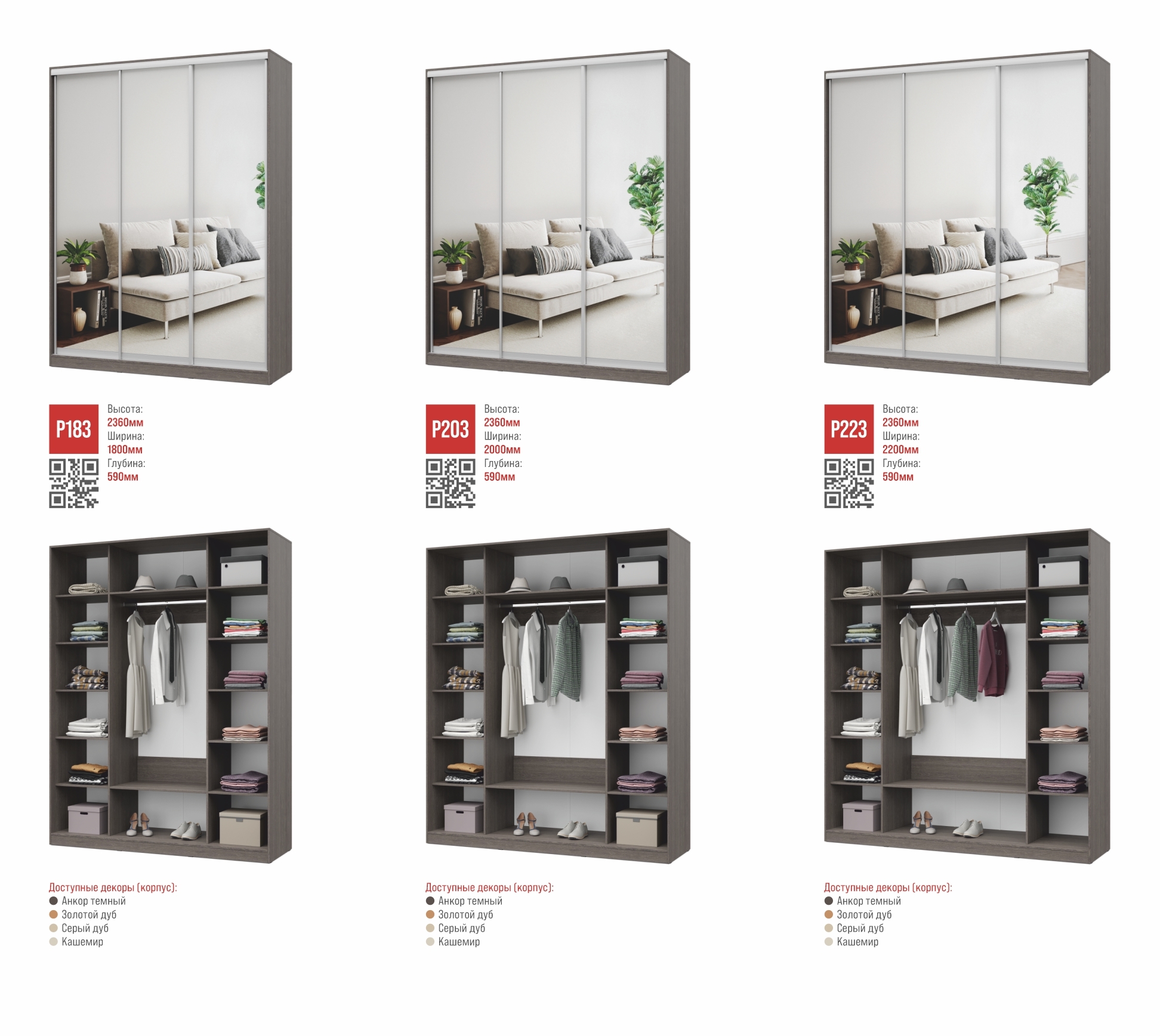Шкаф-купе Роланд /двери зеркало/глубина 590 мм