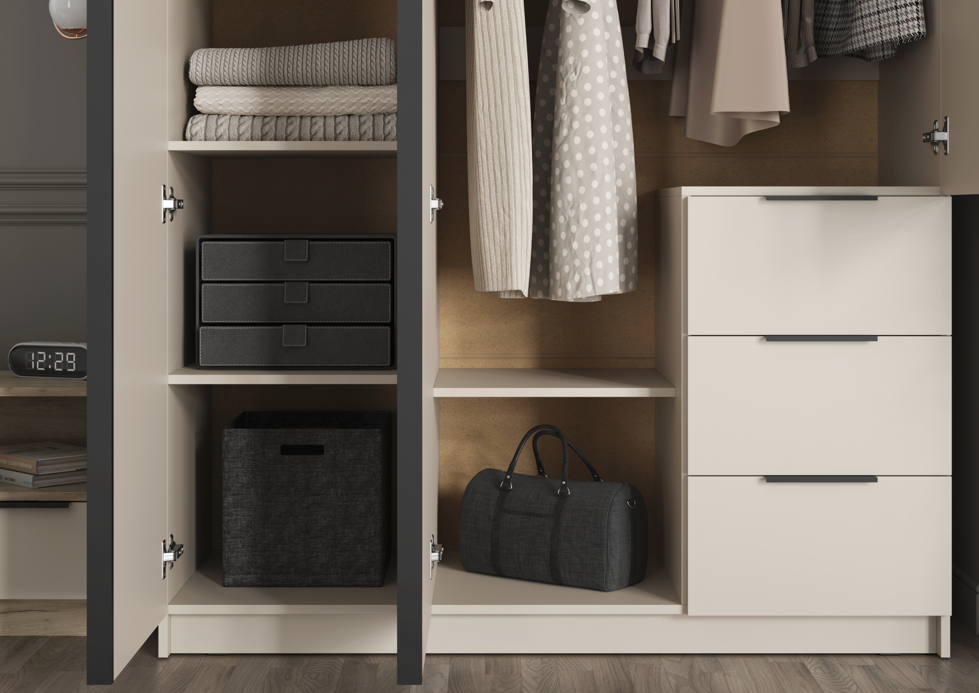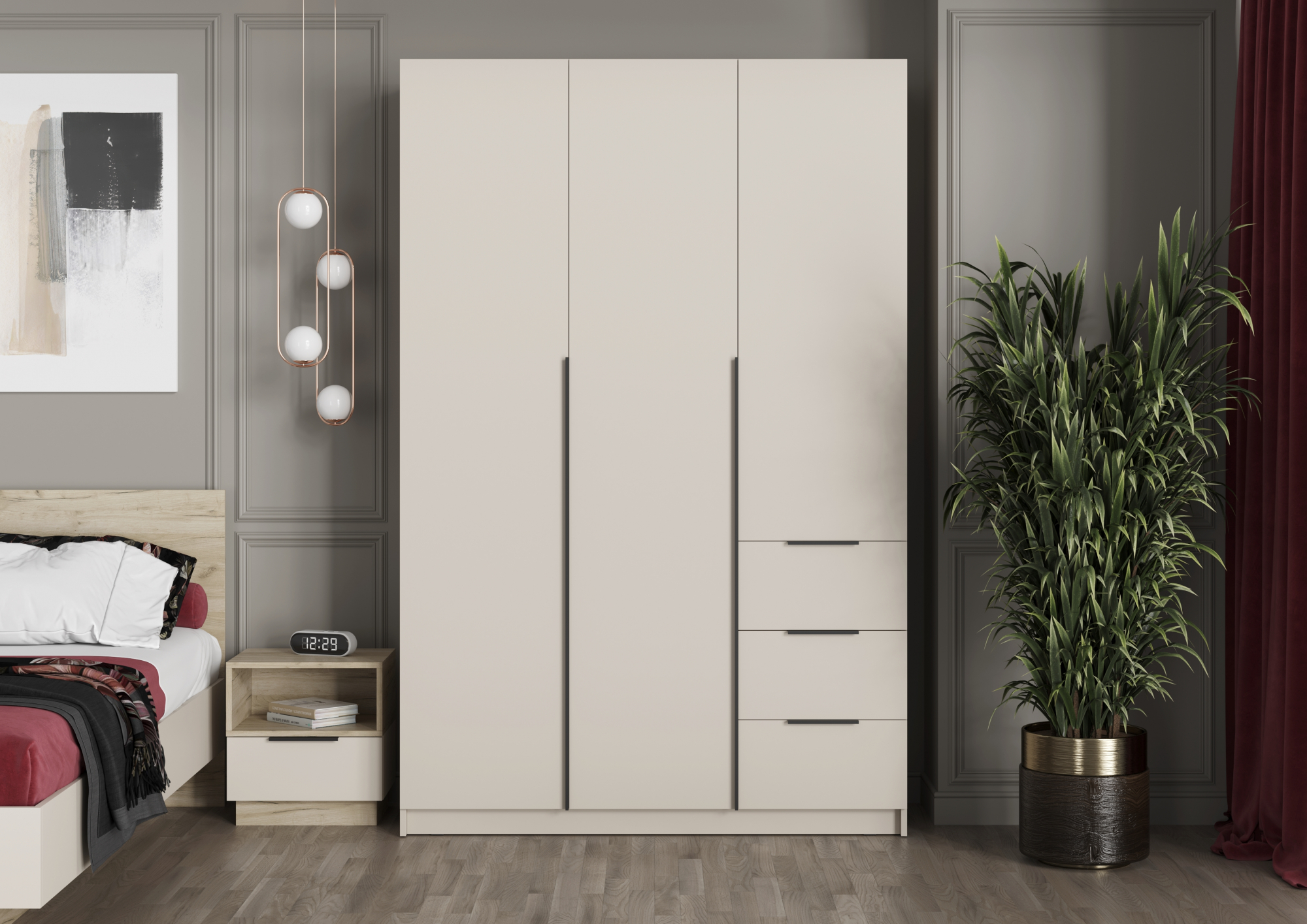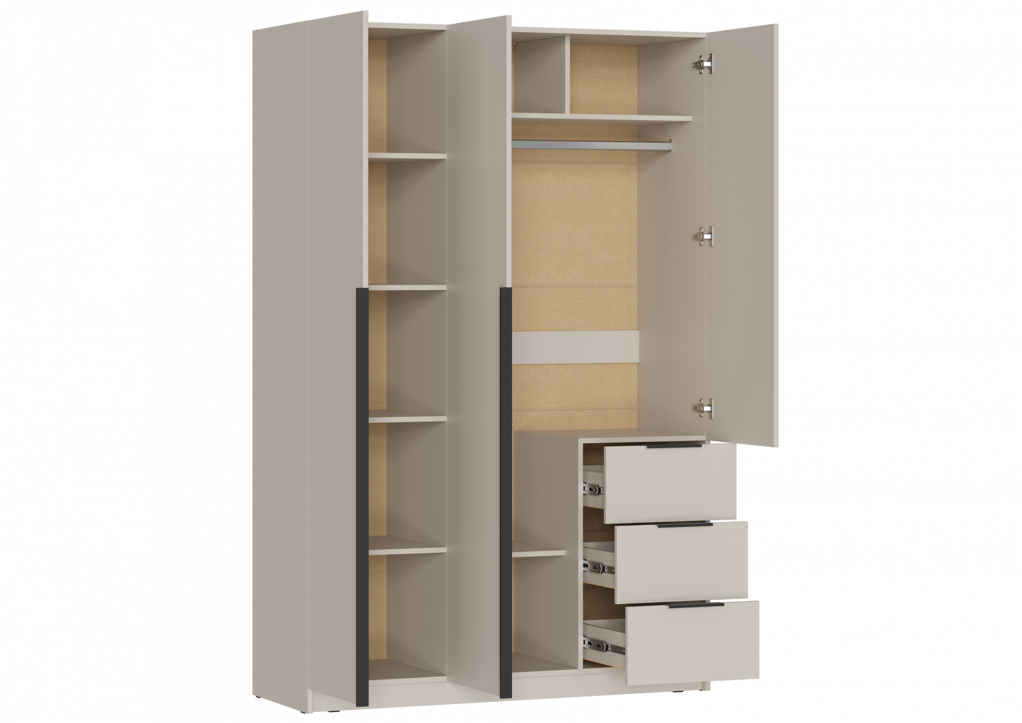 Ищете вместительный и современный шкаф для хранения одежды и вещей? ВЕНТУРО ШК-002 - это комбинированное решение, сочетающее в себе три створки и три выдвижных ящика, обеспечивая оптимальную организацию пространства.