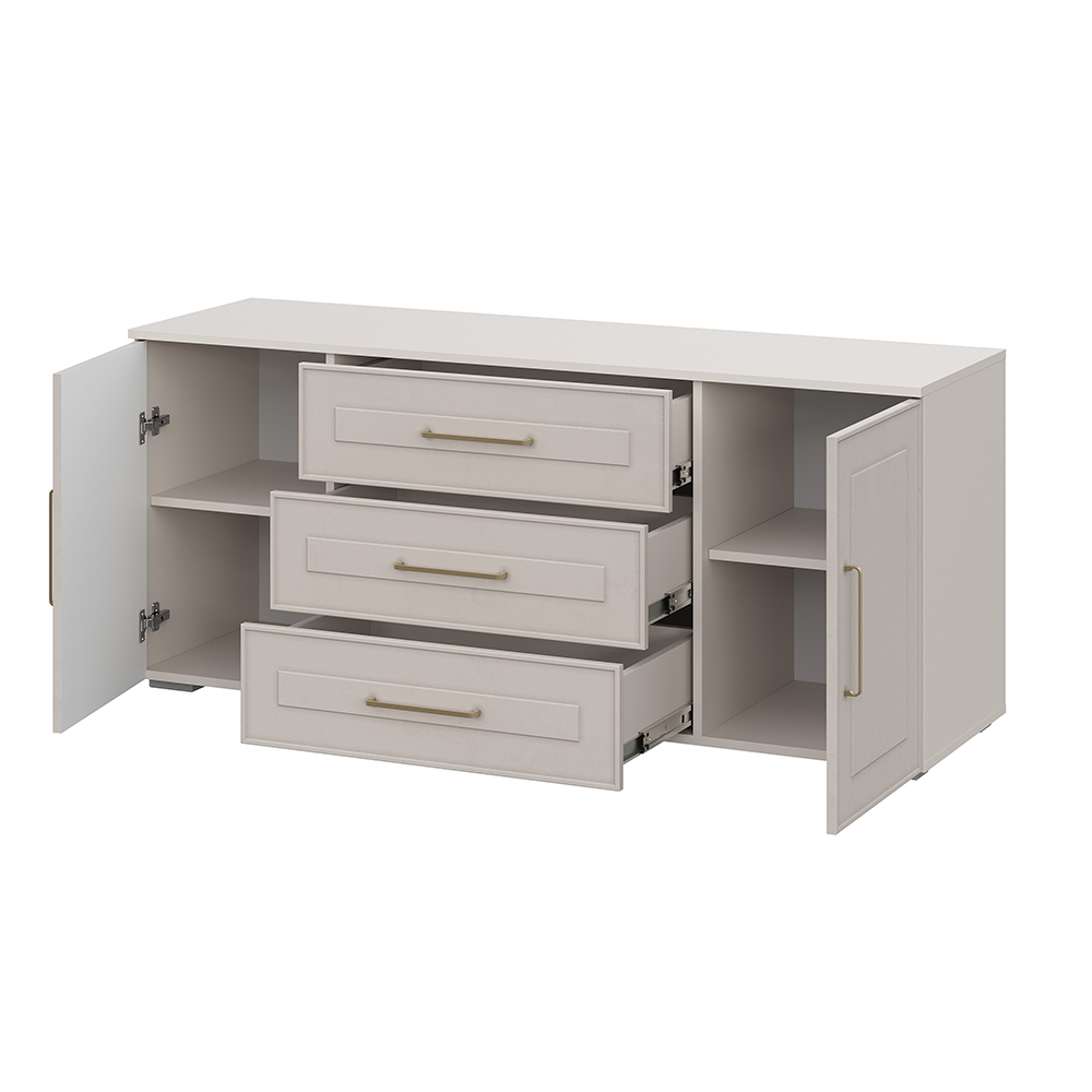 Тумба Антеро с выдвижными ящиками и распашными дверцами — прекрасный выбор для маленькой комнаты или коридора.
